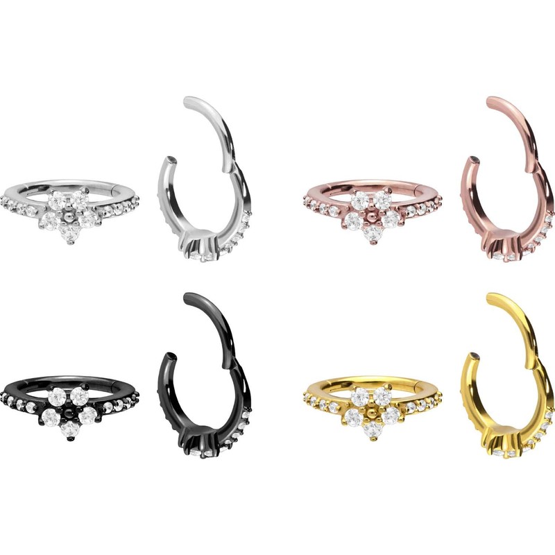 316L Surgical Steel Segment Ring Clicker Surgical Steel 316L - Segment Ring Clicker Set Crystals + Crystal Flower