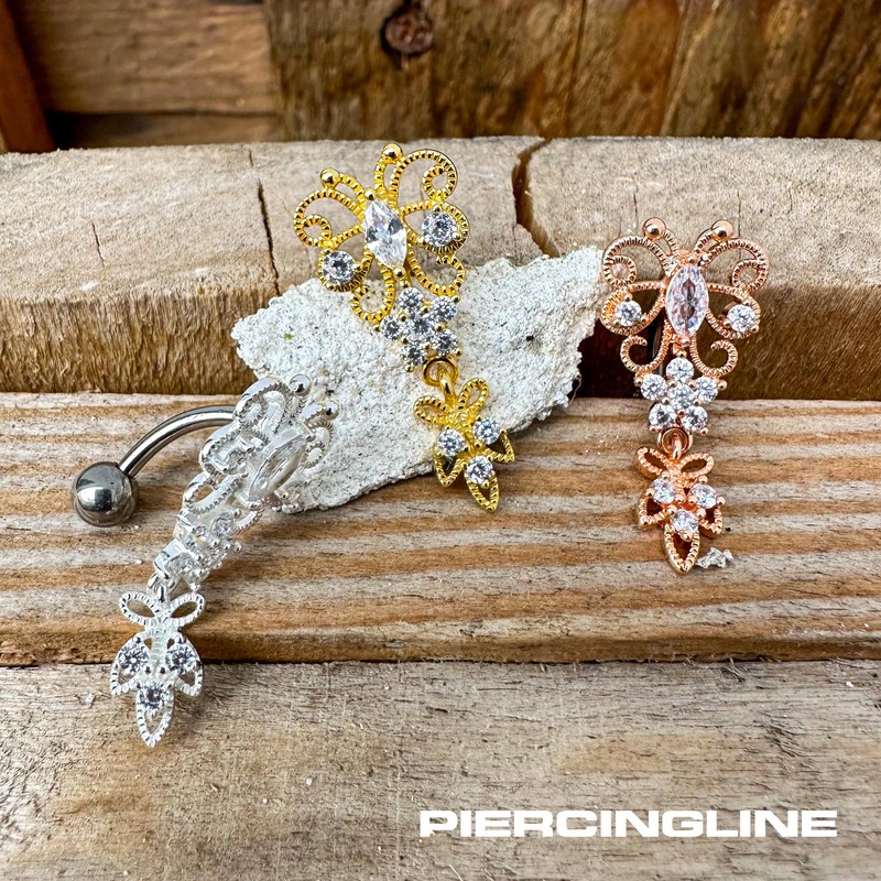 PIERCINGLINE Titanium Belly Button Piercing 925 Silver BUTTERFLY + PENDANT, rose