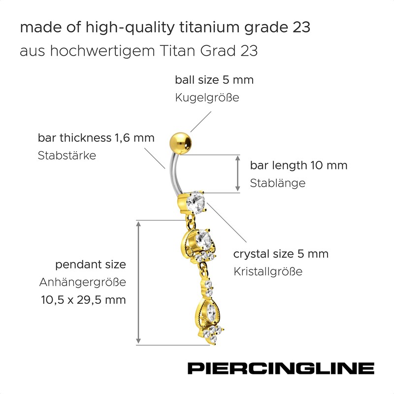 - ➤ THIS BEAUTIFUL NAVEL BARBELL is mainly made of high quality titanium and therefore features useful properties such as high durability and particularly good skin compatibility. Only the oriental design set with crystals was fabricated from 925 silver, including the pendant. If desired, a scratch-resistant PVD coating provides a vibrant color of choice.