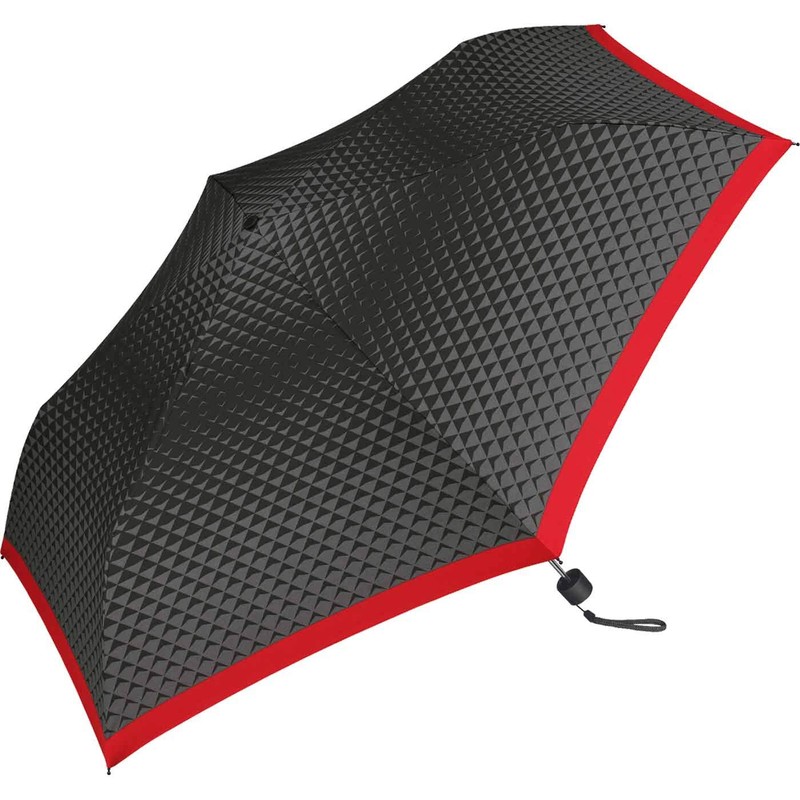 The mini umbrella features a beautiful, modern black and grey pattern with eye-catching red border.