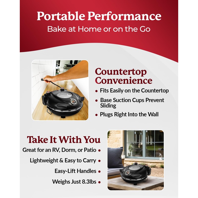 Piezano Pizza Oven by Granitestone – Electric Pizza Oven, Outdoor/Indoor Portable Countertop 12 Inch Stone Baked Pizza Maker Heats up to 800˚F to Simulate Brick Oven Taste at Home As Seen on Tv