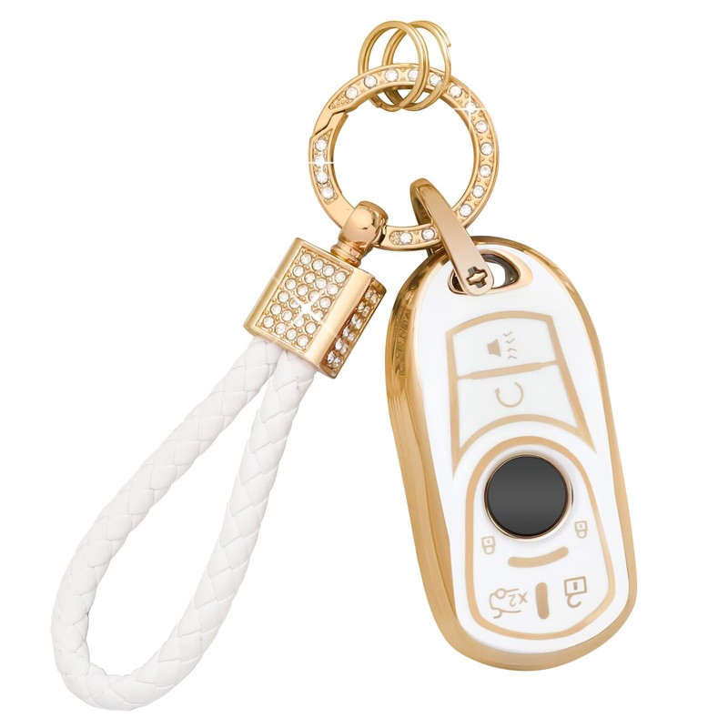 PIFOOG - Funda para llave Buick 6 botones (blanco dorado estilo 1)