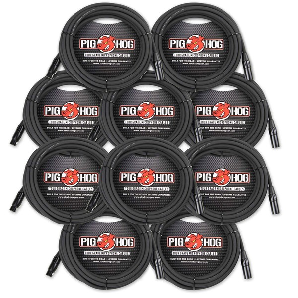 Pig Hog PHM25 25' ft XLR 8mm Tour Grade Mic Cable (10-Pack)