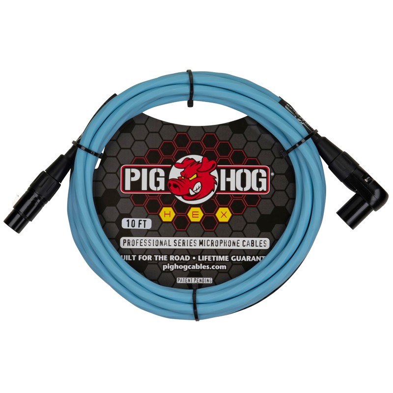 Pig Hog PHMH10DBR Hex Series, 10ft Right Angle Mic Cable, Daphne Blue