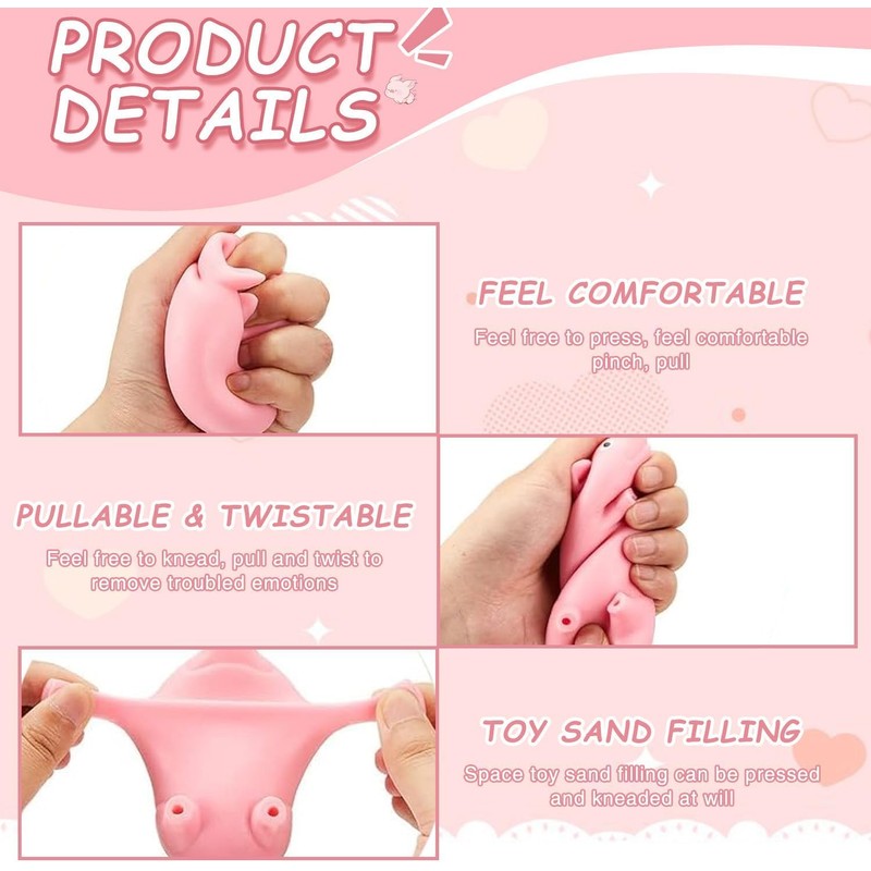 - Easy to clean, wide application: this fun stress relief toy can be cleaned with clean water. If it gets dirty, wash it with soap and dry it, then you can continue to enjoy it. This pig squeeze toy is suitable for most people who want to relieve stress and release emotions. It is ideal for offices, houses, train stations, special education classrooms, travel, airplanes, game parties, fairs and garden parties