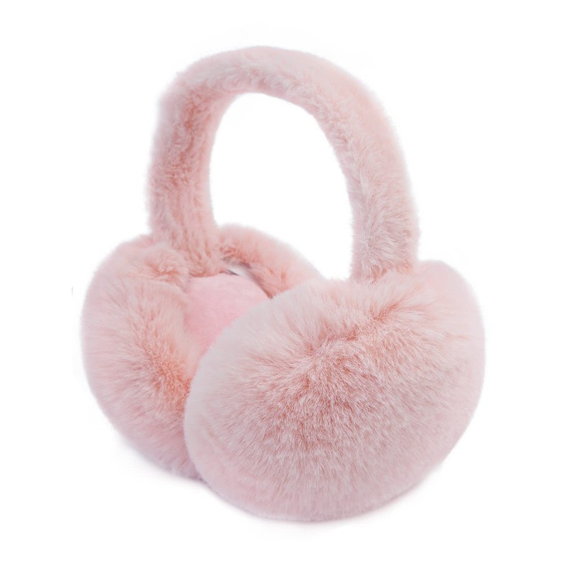 PIGBENGO Foldable Ear Muffs for Women Cold Weather Fluffy Earmuffs Winter Warm Headband Cute Slouchy Ear Warmers (A-Pink)