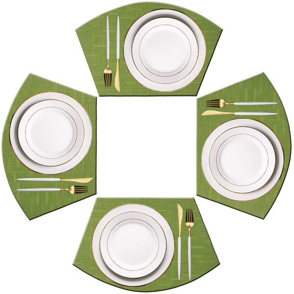 PIGCHCY Wedge Shaped Placemats for Dining Table Washable Vinyl Placemats Heat Resistant Table Mats Set of 4 (Sage Green)