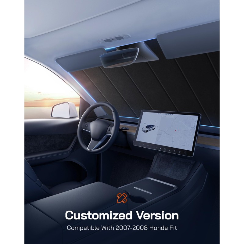 Pigenius Windshield Sun Shade for Honda Fit 2007-2008,Thicken Front Windshield Sunshade for Summer,6 Layers Sun Shield,Accordion Fold