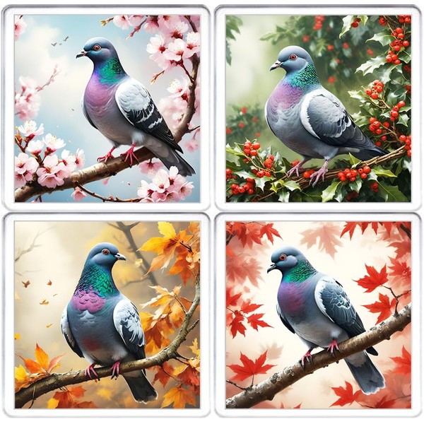 - Set of Four: Each coaster features a unique, high-quality image of a beautiful Pigeon.