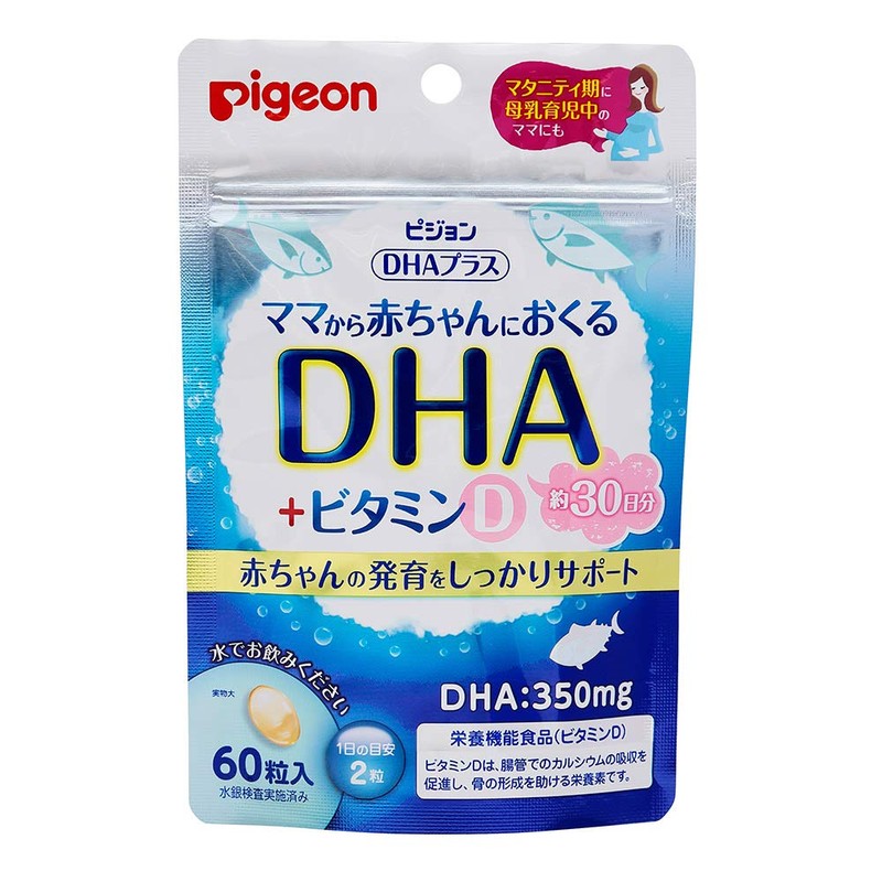 - (DHA and Vitamin D formula) This product contains a lot of blue fish, DHA which is indispensable for baby's development, and it also includes vitamin D that promotes the absorption of calcium and aids in the formation of bones. It supports the development of your baby through breast milk