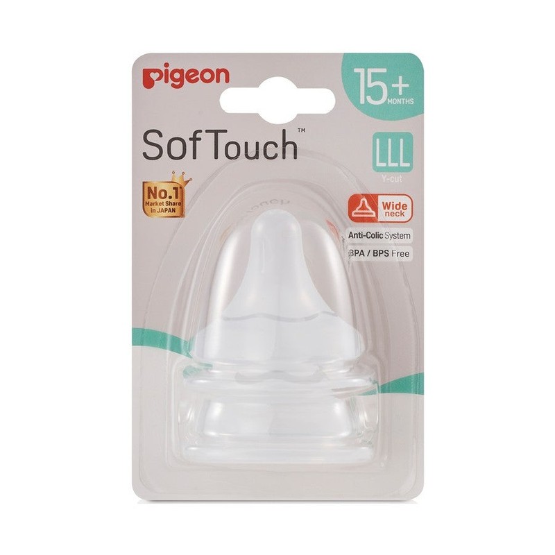 PIGEON New SofTouch™ Nipple caters to the 3 key steps when a baby sucks: Latching On, Peristaltic Tongue Movement and Swallowing. Allows smooth transition between feeding from breast to bottle and eliminates issue of nipple confusion. 15+ months