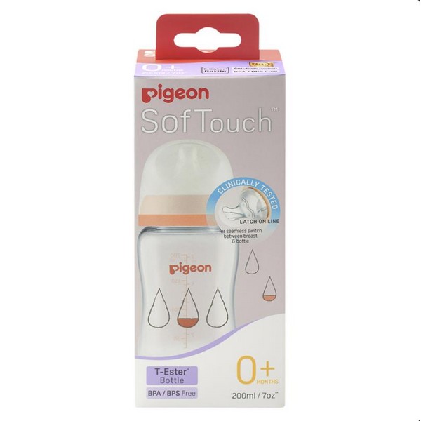 • The Pigeon SofTouch T-Ester Bottle provides a premium glass-like clarity for better visibility and unlike other plastic baby bottles is UV sterilizer friendly.• Pigeon SofTouch Nursing Bottles come with a research-based latch-on line for appropriate latching, and even softer nipple that is closest to mother's breast.