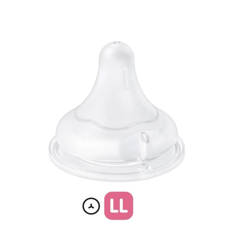 2 x teats of of size LL, for 9+ months. The opening of the nipple is slightly bigger Y-cut than L size nipple to allow more milk to drip out. Milk drips out when there’s pressure on the nipple. This helps babies to control the flow of milk and train their sucking ability as babies at this age have developed a stronger jaw muscle.