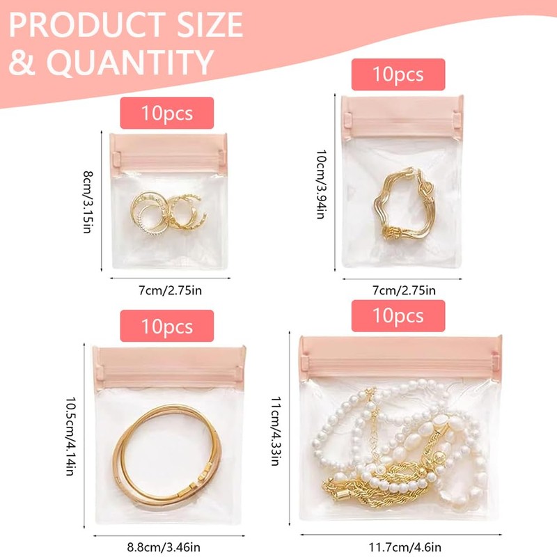 PIGIAOKA 40PCS Eva Jewelry Bag, Anti Tarnish Clear Jewelry Storage Bags Pouches Ring Earrings Bracelet Watches Jewelry Zipper Bag, No Yellowing and No Odors (Four Sizes)