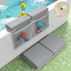 - Four Mesh Pockets: The 9-inch widened outer mesh pocket in this bath kneeler and elbow rest pad set is perfect for holding all baby's toiletries.This baby bath kneeler and elbow rest pad set help baby enjoy the fun of bathing