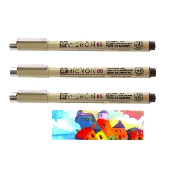 - Pigma Micron Sakura Sepia 05. Set of 3 and 1 card
