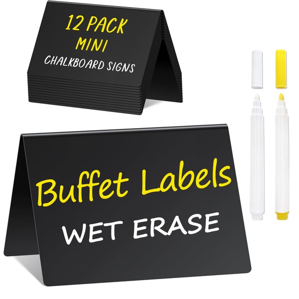 PigPotParty 4"x3" Mini Chalkboard Signs for Food, 12 Pcs Food Signs for Party Buffet, Small Chalk Board Food Labels, Table Place Cards, Wedding - Bakery - Birthday, Includes 2 Wet Erase Markers