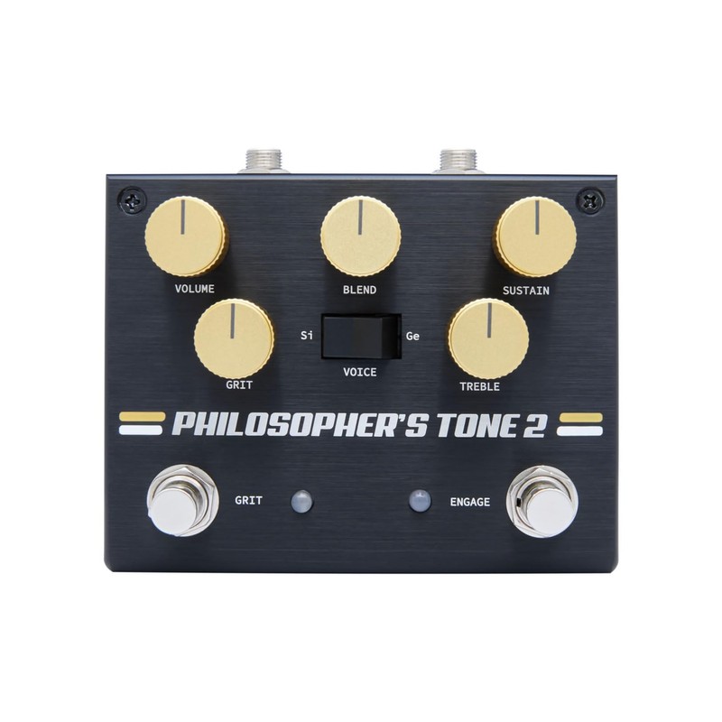 A Classic Compressor Emboldened with Old-school Bite The Pigtronix Philosopher’s Tone 2 builds upon an all-time compressor classic, brandishing all the optical-style magic of the original with a dramatically enhanced control section. From squashed country-style cleans to screaming never-ending leads, the Philosopher’s Tone 2 shapes your signal’s dynamics with a smooth, round, and midrange-rich response. A full-featured control section consisting of a Volume, Sustain, and Treble switch makes it a breeze to sculpt out your sound, and you even get a Blend switch to balance between your dry and compressed signals. Lastly, the Philosopher’s Tone 2 comes equipped with a footswitchable Grit circuit that emboldens your tone with a switchable selection of germanium-style warmth or stout silicon sonics.Switchable grit circuit Silicon vs. germanium — it’s among the oldest arguments in the stompbox world, pitting the wild, wooly roar of germanium against the tighter, more reliable sound of silicon. If you