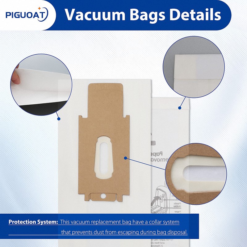 - Protection System: This vacuum replacement bag have a collar system that prevents dust from escaping during bag disposal.
