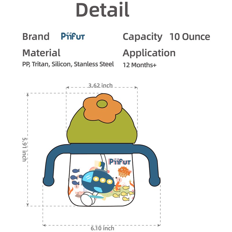 - 360° Drink: Piifur straw cup is equipped with a gravity ball, baby can drink water smoothly no matter what angle the baby flips the cup.