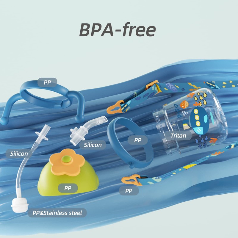 - BPA-free: All materials of Piifur sippy cups are BPA free. The cup body is made of Tritan, the lid is made of PP, the straw is made of food grade silicone, and the gravity ball is made of PP and stainless steel.