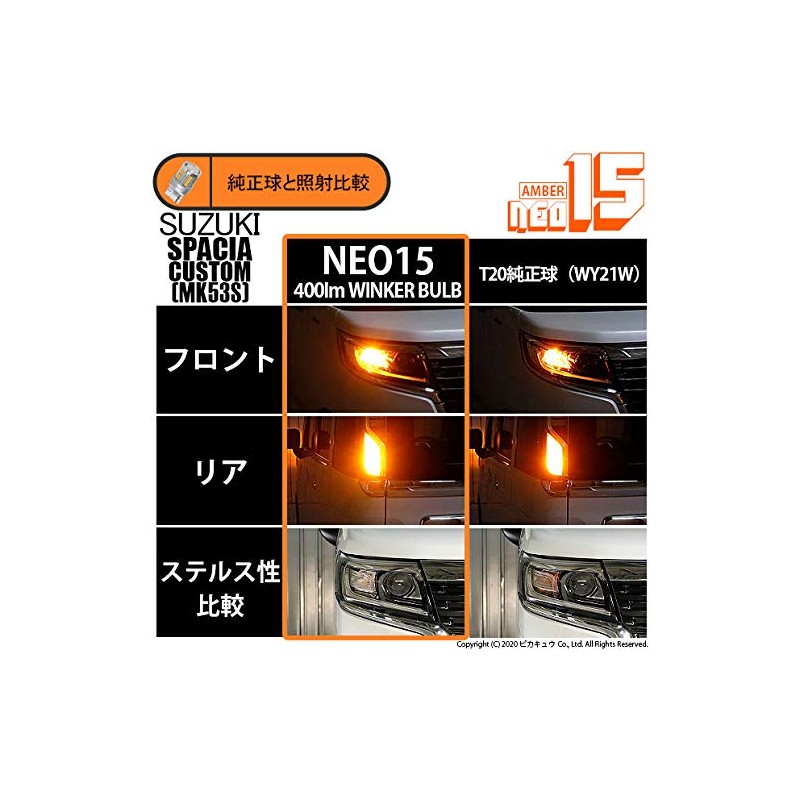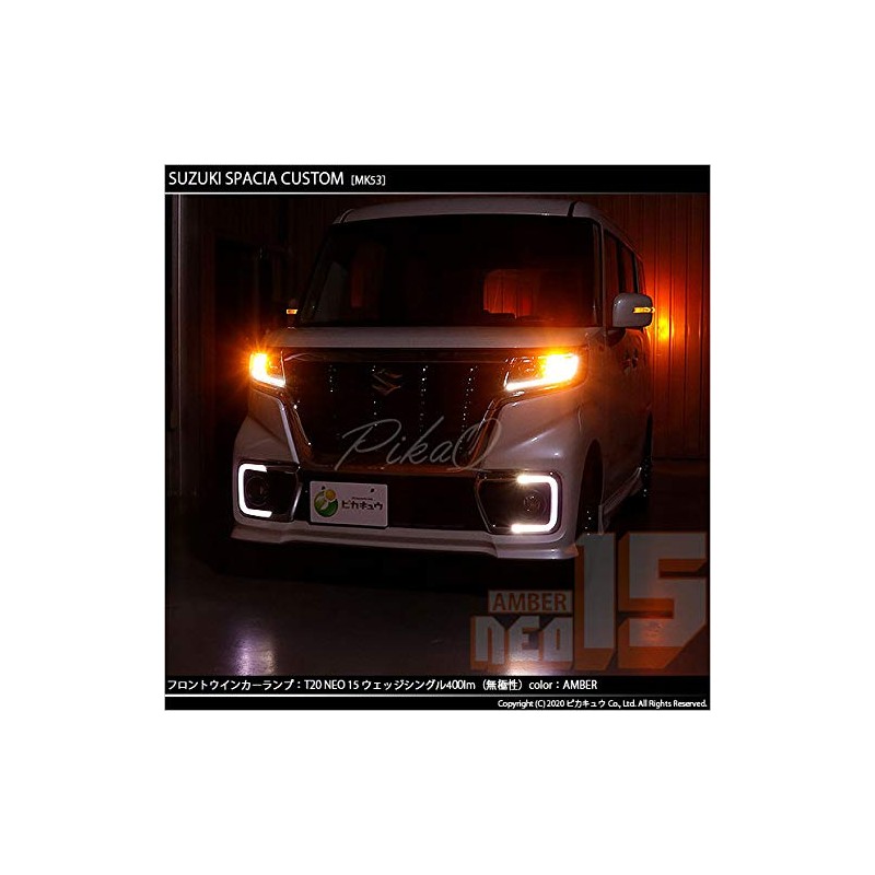Pikakyu 20424 Suzuki Spacia Custom Hybrid [MK53S] Compatible FR Turn Signal LED T20S NEO15 400lm Wedge Amber, 2 Pieces