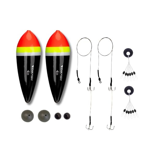 - Includes 2 predator floats, 12 float stops, 2 rigs with double treble hooks