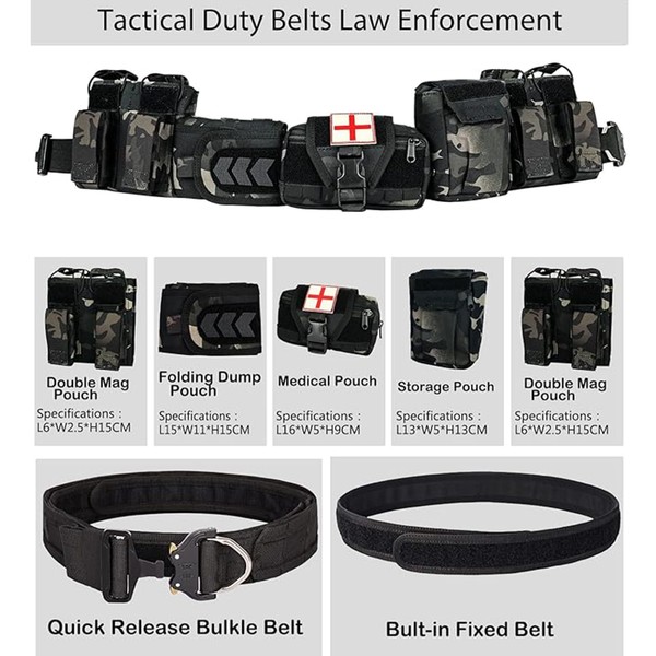 PIKEON Tactical Battle Belt Quick Release with Accessories Pouches 7 in 1 Belt for Men (Black CP)
