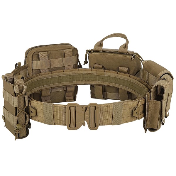 PIKEON Tactical Belt Battle Law Enforcement Molle Airsoft Duty Belt Quick-Release with Pouches 8 in 1 (Tan)