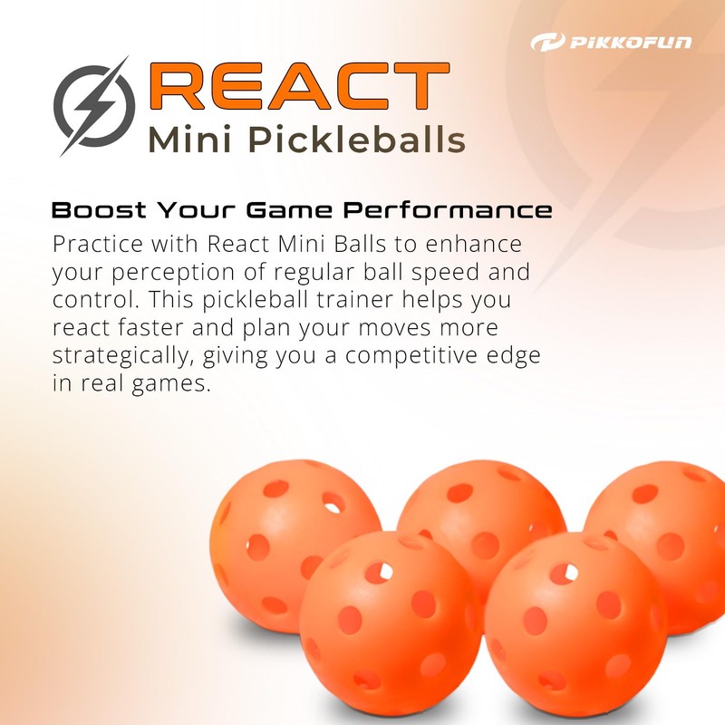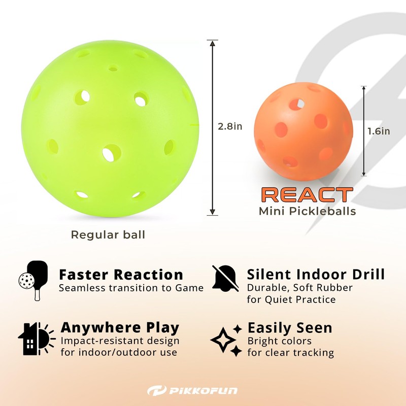 - 【Enhance Your Pickleball Reaction & Precision】 Pikkofun React Mini Balls, in a 1.65-inch compact size, are designed to enhance your pickleball skills by promoting quicker reactions and improved hand-eye coordination. Ideal for activating and refining focus through daily practice or pre-game warm-ups.
