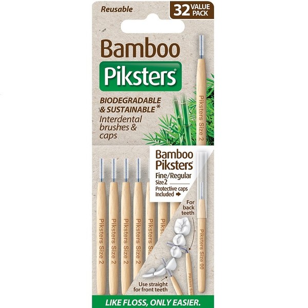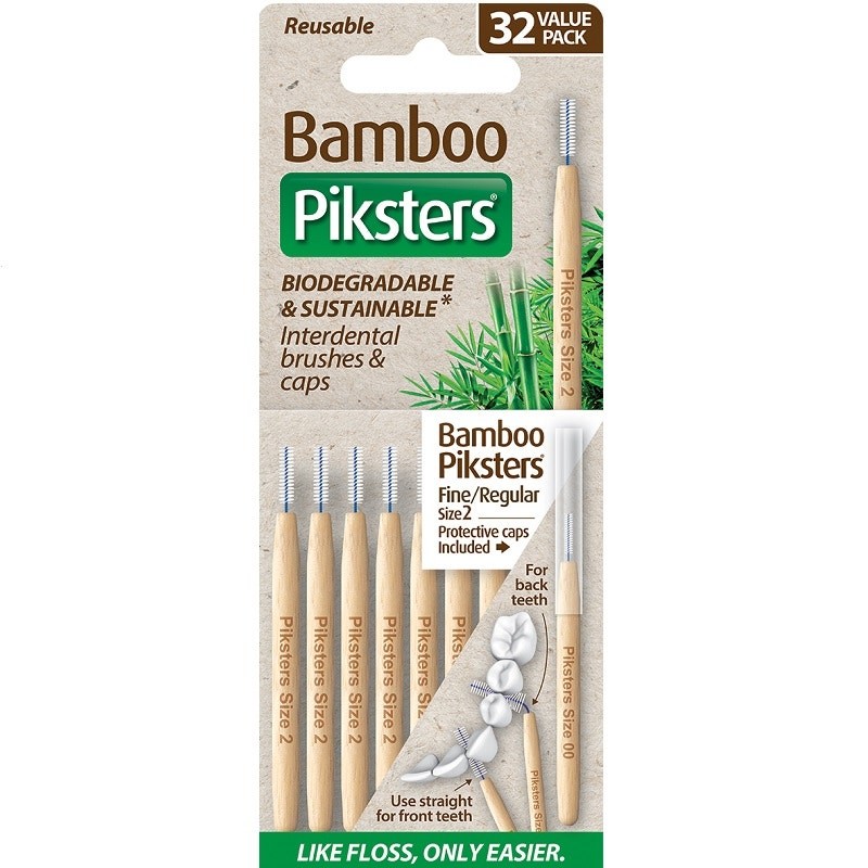 Take care of your family’s dental health with a range of eco-friendly oral care products from Piksters. Piksters Bamboo Interdental Brushes handle is bamboo, a biodegradable, renewable and sustainably grown resource. Piksters Bamboo Interdental Brushes are a more environmentally friendly alternative to traditional interdental brushes, keeping your smile clean with minimal impact. Value bulk pack with 32 Piksters Bamboo Interdental Brushes.