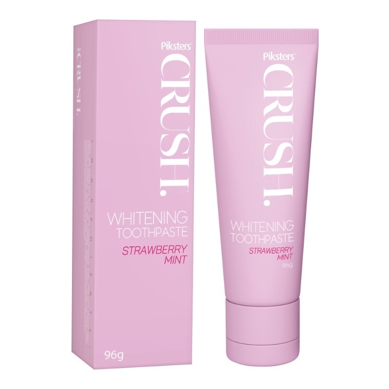 Crush your daily brushing routine with Piksters CRUSH Strawberry Mint Whitening Toothpaste. With each brush, enjoy a burst of flavoured freshness combined with essential fluoride (1450ppm) and PAP, an active ingredient used in professional teeth whitening products.