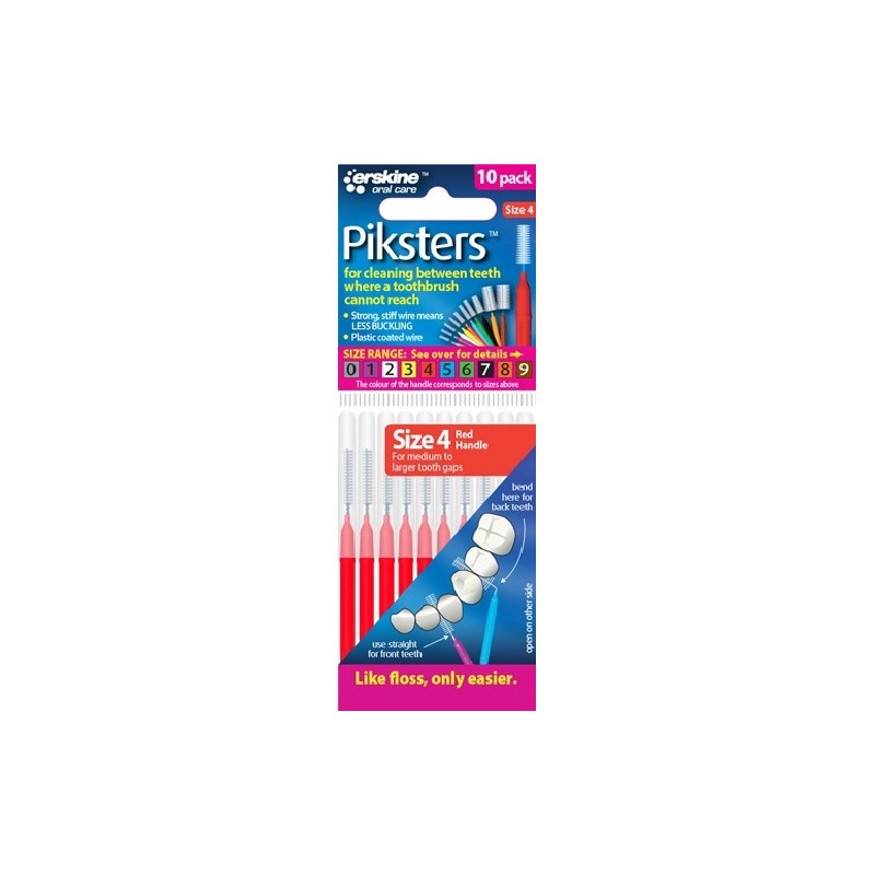 Piksters Interdental Toothbrush – Size 4 Red (10 Pack)