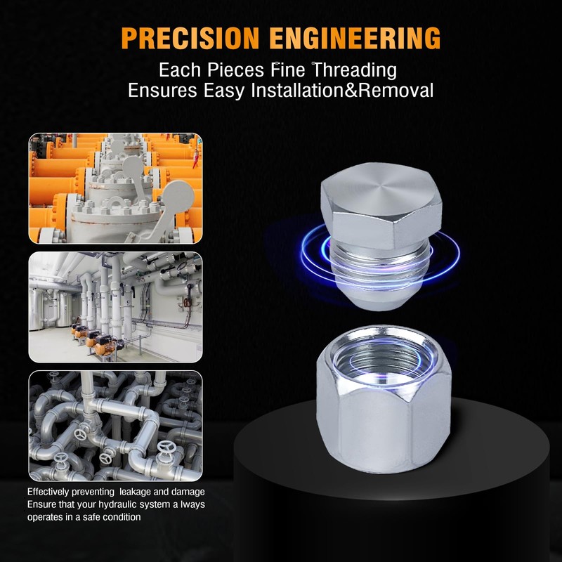 • Durability and Strength: Crafted from 45# structural steel , these hydraulic plugs are built to withstand tough conditions and ensure long-lasting performance. The robust construction guarantees durability, making them a reliable choice for any hydraulic system.Widely used in agriculture, contruction,mining and fuel industries for high pressure fuel delivery and fluid power applications,seal hoses, tubes, and pipes.