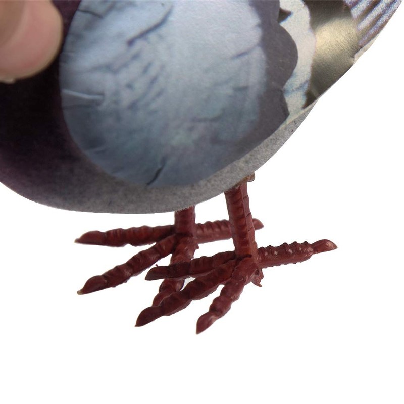 - Material: Simulation Pigeon is mainly made of compression foam, the surface is flocked, the wings and tail are painted paper (not waterproof), plastic claws.