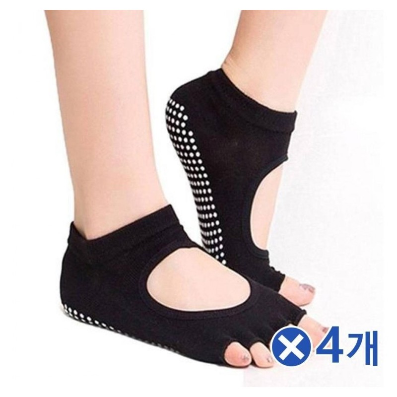 Pilates Open-Toe Yoga Grip Socks Black (4 Pairs)
