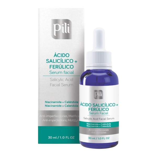 Pili Salicylic + Ferulic Acid Serum – Blemish Control & Oil Control Serum for Face – Exfoliating, Antioxidant Formula with Niacinamide & Calendula – For Oily, Acne-Prone Skin – 1 fl oz