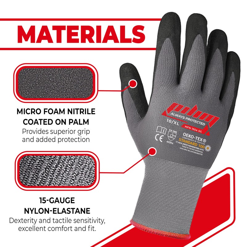 Pilim Microfoam Nitrile Safety Work Gloves - Heavy Duty Grip Gloves for Construction, Gardening, and Mechanics