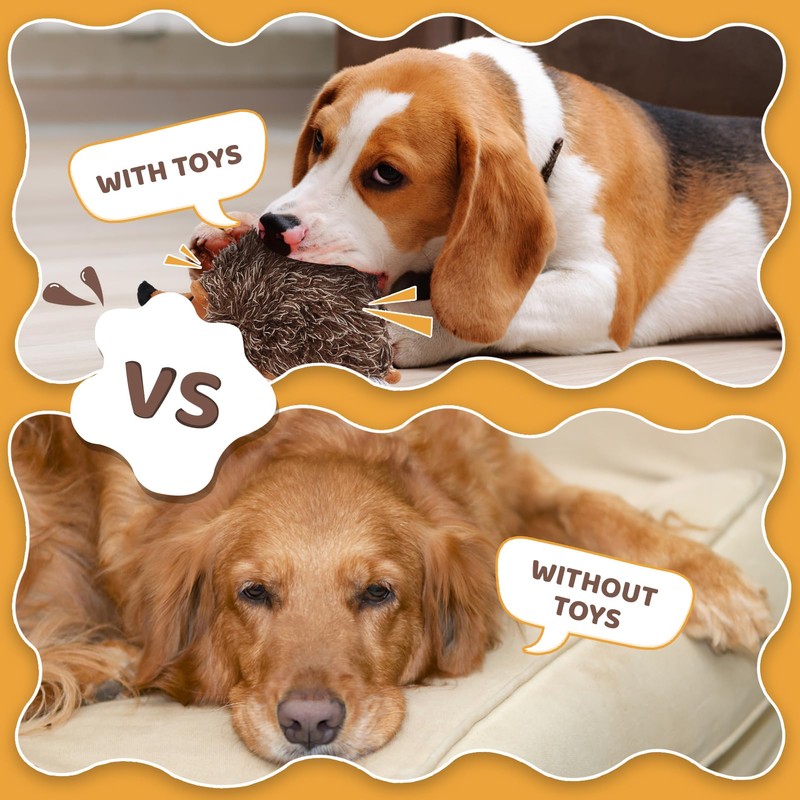 - 🎁【Interactive Dog Toys】Challenge your dog with additional dog toy fake hedgehog to an extra game of hide and seek. This squeaky dog toy is a must have in your puppy supplies. Each hedgehog has an non resistible squeaker. This Hedgehog dog toy is a perfect dog toy for your puppy to release anxiety and prevent damage to furniture when your puppy stay at home alone. And Hedgehog rounded shape is very suitable for dogs who love to carry, roll, and snuggle up for naps.