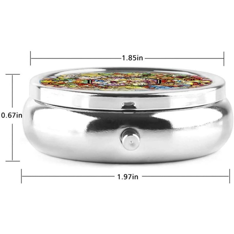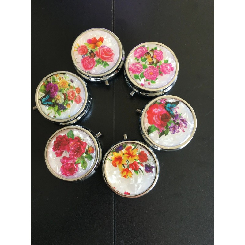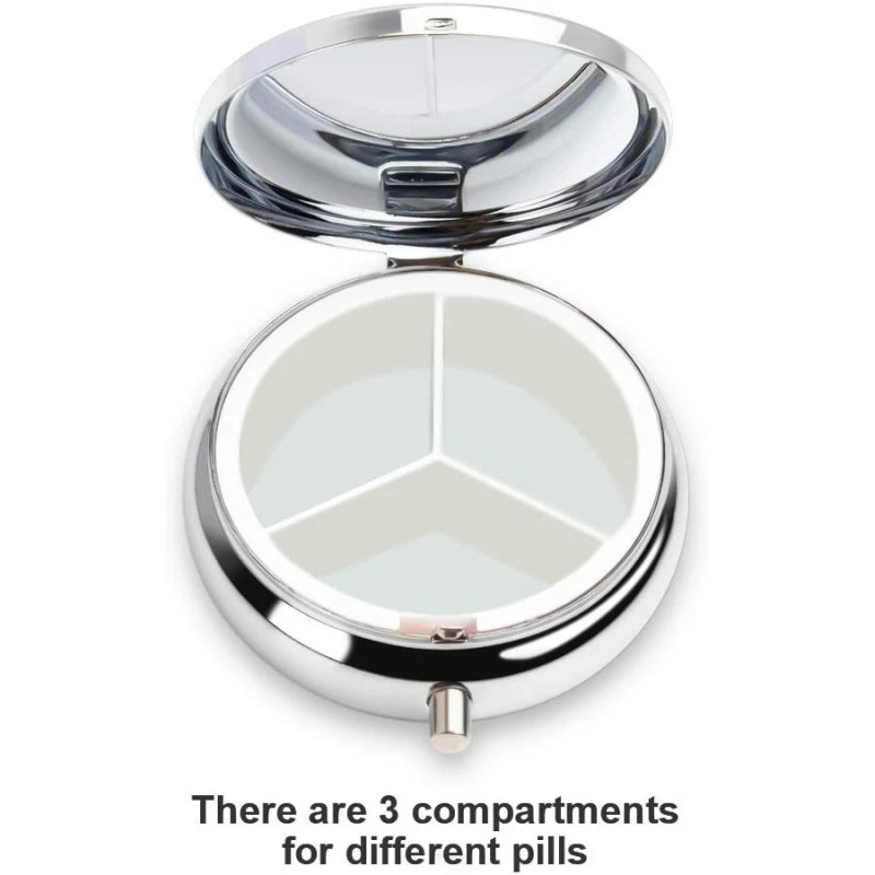 PILL BOX 1 Round Compact Metal pill box With 3 Compartments, 1.8" Dia. Assorted Designs
