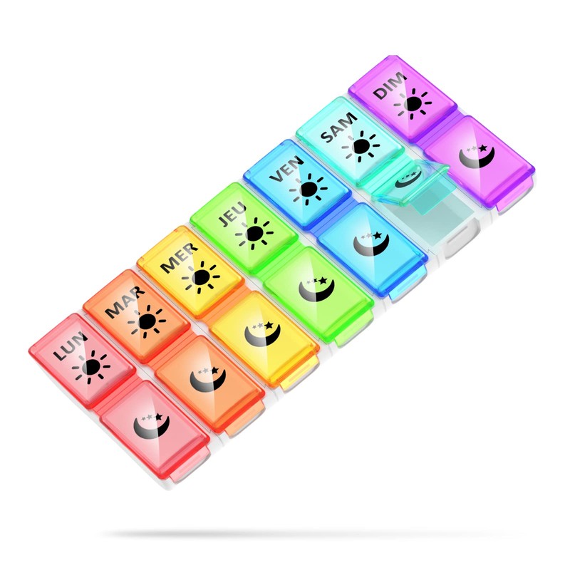 Pill Box 7 Days 2 Compartments Small Pill Box Morning Evening 14 Compartments Removable Weekly Pill Box (Multi-Colour-FR)