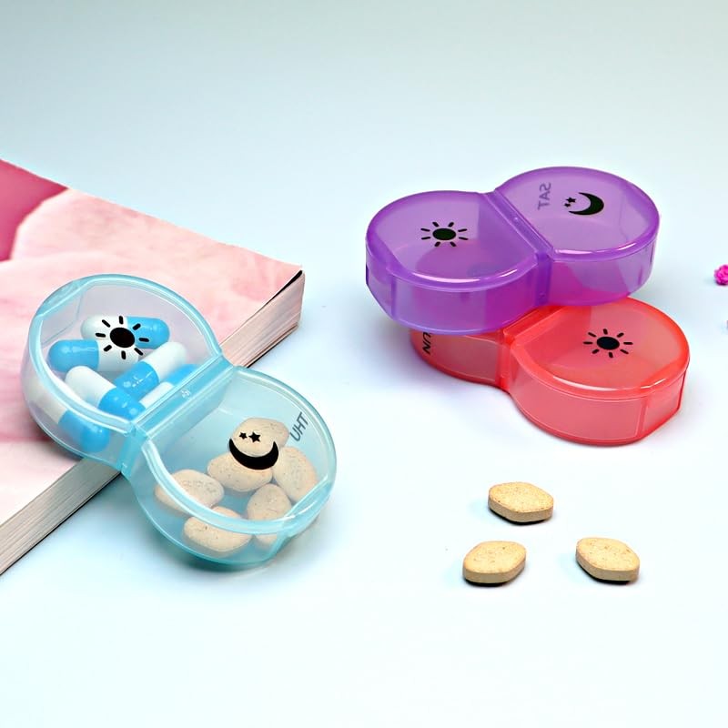 - Twice a day pill box: 7 individual boxes with 2 compartments. Helps organize your weekly medication and pills