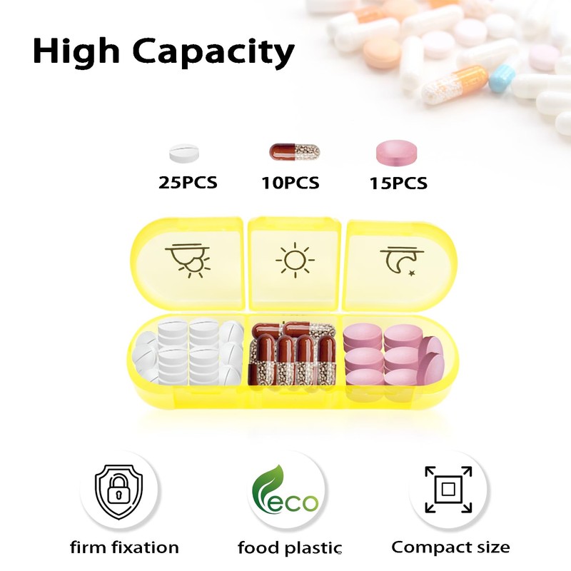 - [Large Capacity]:Each compartment can hold up to 8 fish oils or 8 large vitamins, large enough for storing daily medication. High quality design so you don't have to worry about accidental opening and spilling pills.