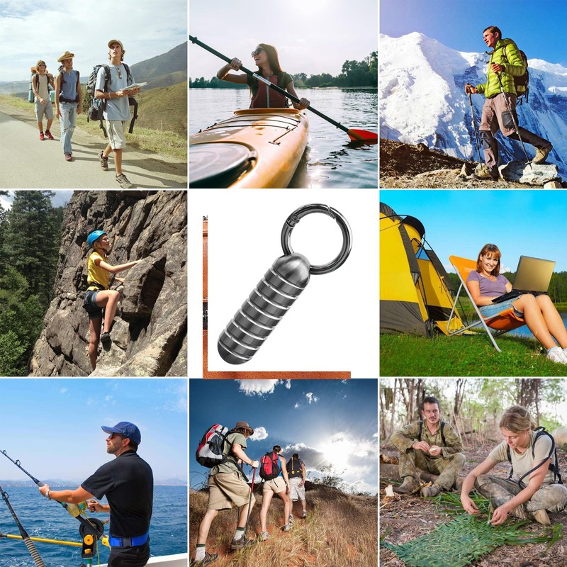 The pill box key ring, mini titanium pill box keyring, waterproof pill box metal is a practical and versatile accessory for people who need to take medication regularly and are on the go. Made of high quality titanium, the mini titanium pill box keychain is sturdy and durable. The waterproof metal construction protects your medication from moisture and unwanted elements. The space-saving design allows you to conveniently carry the pill box in your bag or on your keychain without adding bulk. This pill box is not only practical, but also versatile. It is also ideal as an SOS capsule to store important emergency information or contact details. Get the pill box key ring, mini titanium pill box keyring, waterproof pill box metal - the ideal companion for travel, camping and everyday use.