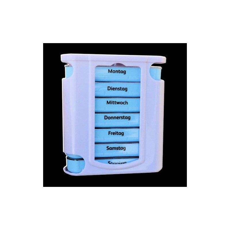 • Weekly dispenser per day, 4 compartments (morning, noon, evening, night)