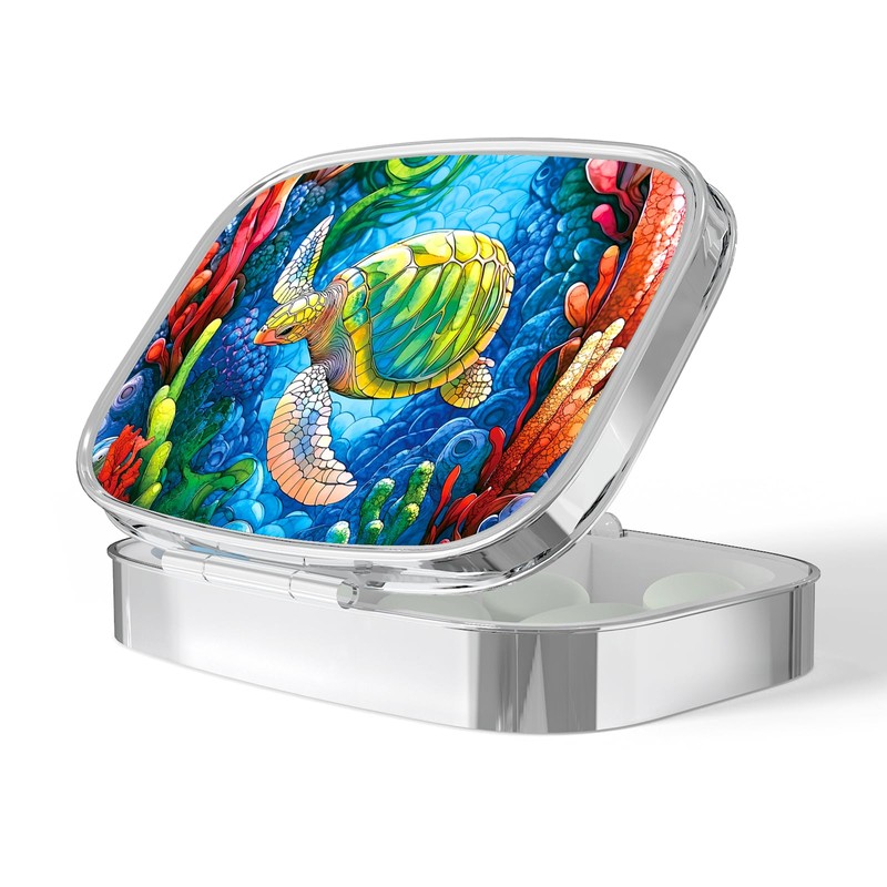 Pill Box, Small Pill Case for Purse & Pocket, Metal Decorative Pill Container, Cute Mini Portable Pill Holder to Hold Supplements, Vitamins, Fish Oil, BPA-Free(Sea Turtle)
