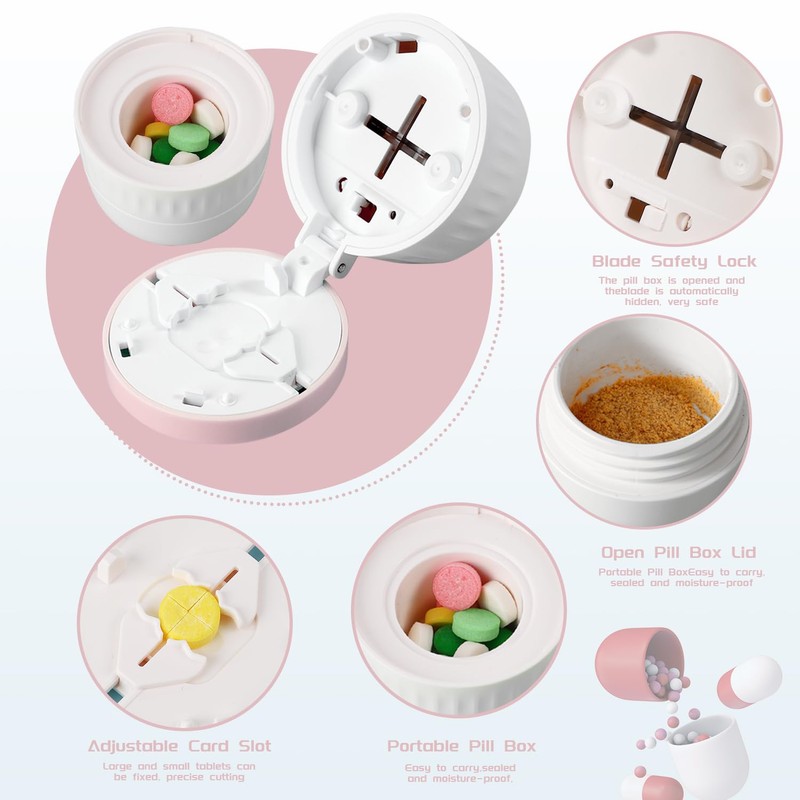 Pill Cutter,Pill Crusher,Pill Cutter 1/4 Splitter for Small and Tiny Pills,4 Functions Pill Cutter1/2,Pill Cutter1/4,Pill Grinder,Pill Organizer, Suitable for Carrying On The Go (Pink)