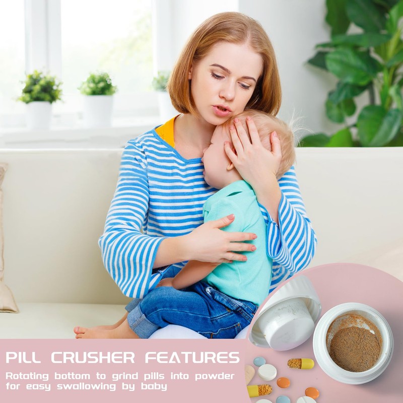 - 【Pill Crusher&Pill Organizer】This product comes with a grinding function for pills, located at the bottom, where the pills are put in and the body is turned tightly to instantly achieve the grinding effect. In addition, after turning the second circle of the blue cover, and then open the center white cover, can refer to the picture or instructions, you can store at least a week of pills.