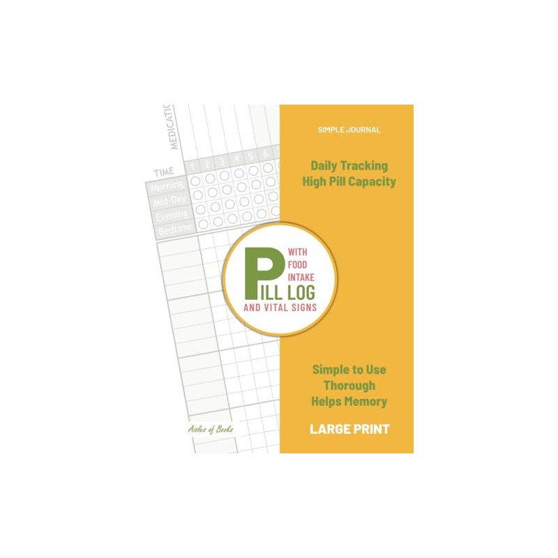 Pill Log with Food Intake and Vital Signs: Daily Tracking, High Pill Capacity, Large Print