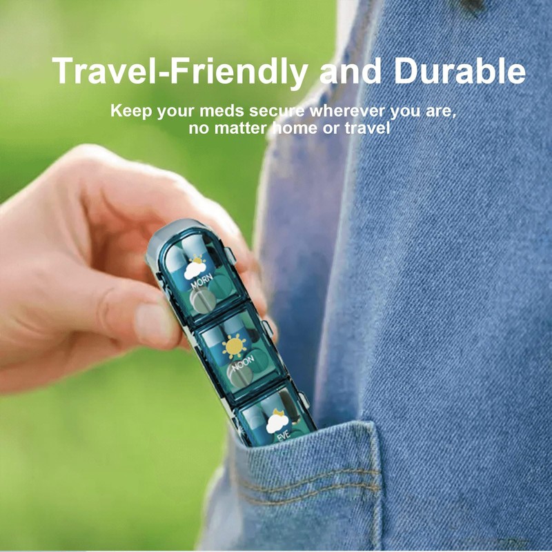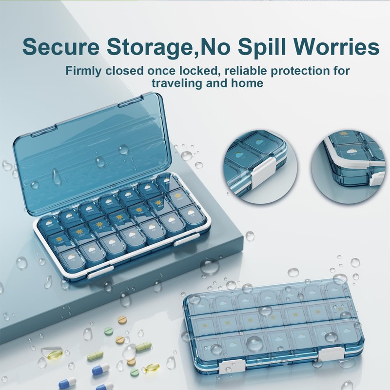 - Double Protection: This travel pill organizer container has dual snap closures and a sealing ring to ensure it stays securely locked, preventing accidental openings. It protects your meds from humidity and unauthorized access, perfect for home, office, or travel. No spill worries in your purse or bag